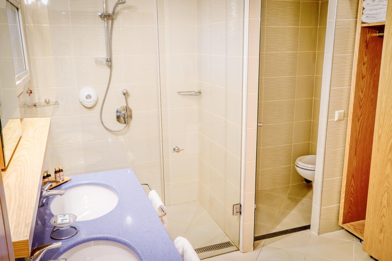Dvoulůžkový pokoj, Boční výhled moře: klimatizace, telefon (za poplatek), TV, minibar (první naplnění zdarma), trezor (za poplatek), koupelna/WC (vysoušeč vlasů), balkon